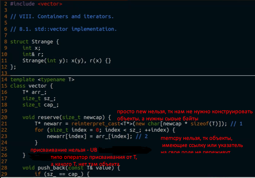 отличие push_back от emplace_back - emplace_back это метод, который принимает не объект T, а аргументы, из которых создает T на месте