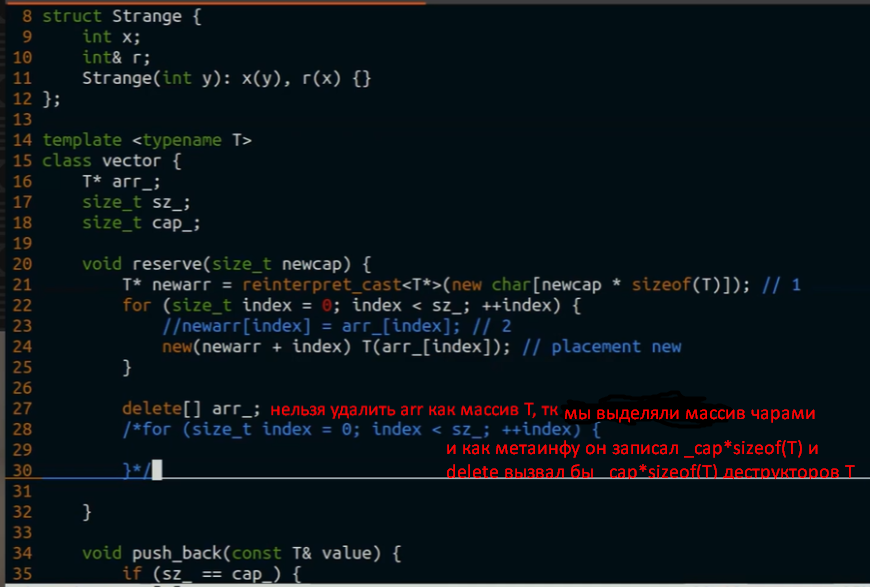 new(pointer) T(arr[i]) - placement new - вызвать конструктор данного типа по данному адресу