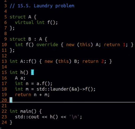 std::launder предотвращает оптимизации компилятора связанные с девиртуализацией и с константами