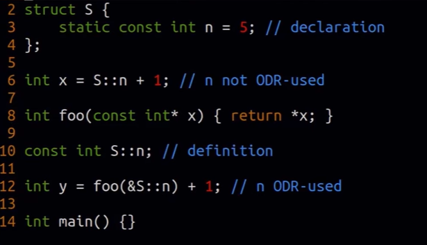 будет так называемая IFNDR - ill formed no diagnostics requiered (undefined reference, линковщик не найдёт определение n)