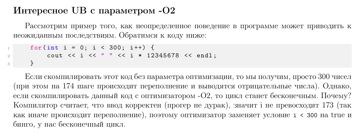 UB (Undefined behaviour) - может упасть, а может и не упасть возникает потому что компилятор написан для таких программ, в которых нету UB, поэтому при оптимизации могут произойти разные вещи: обращение за границы вектора или строки использование неинициализированной переменной x++ + ++x потому что нет гарантии какое из выражений вычислится первым разыменование невалидного поинтера, переполнение инта, битая ссылка