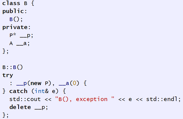 обработка исключения, возникающего в списке инициализации через try в скоупе класса - function try block