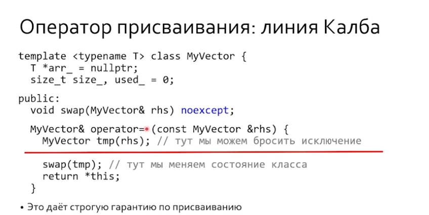 прикольный способ проверить strong exception safety - мысленно провести линию если выше неё не меняется состояние класса, а ниже неё не бросаются исключения, то гарантия будет строгой