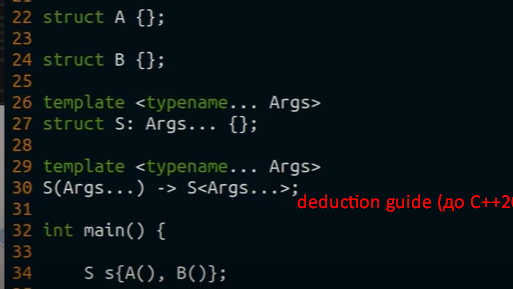 частное предпочтительнее общего методы с таким же именем, как у родителя, затмевают родительский метод также и с полями, поля наследника более локальные Метод класса, если определён полностью внутри класса, помечается inline, это позволяет обходить ODR. Начиная C++17, inline можно использовать и с переменными для обхода ODR. Так, например, можно определять статические поля класса в хедере.