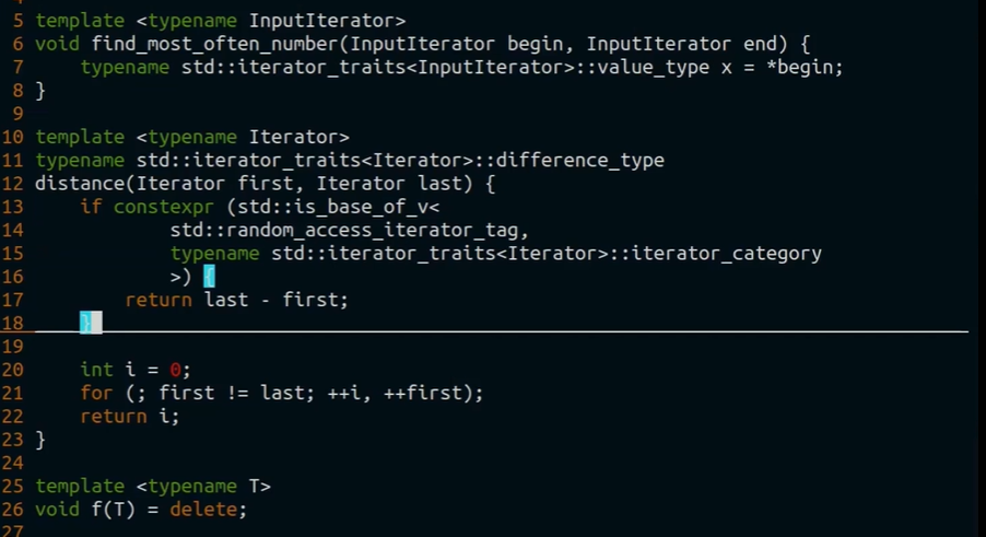 - contiguous iterator (C++20) - гарантирует, что он эквивалентен указателю, непрерывный участок памяти. *(&*it +n) == *(it+n) - сложение итераторов это просто хождение по памяти на n шагов (ex. std::vector, std::array, T*)