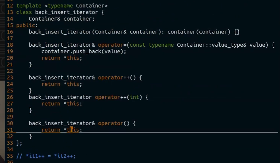 back_insert_iterator - адаптер над итератором - output iterator - реализован так, что будто бы записываем в контейнер