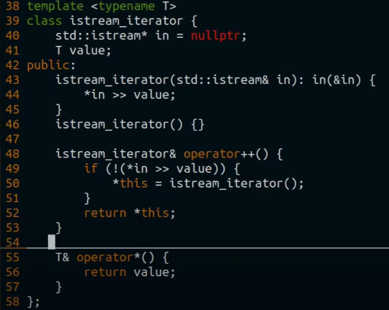 делает вид, что происходит инкремент итератора, а на самом деле происходит ввод в поток