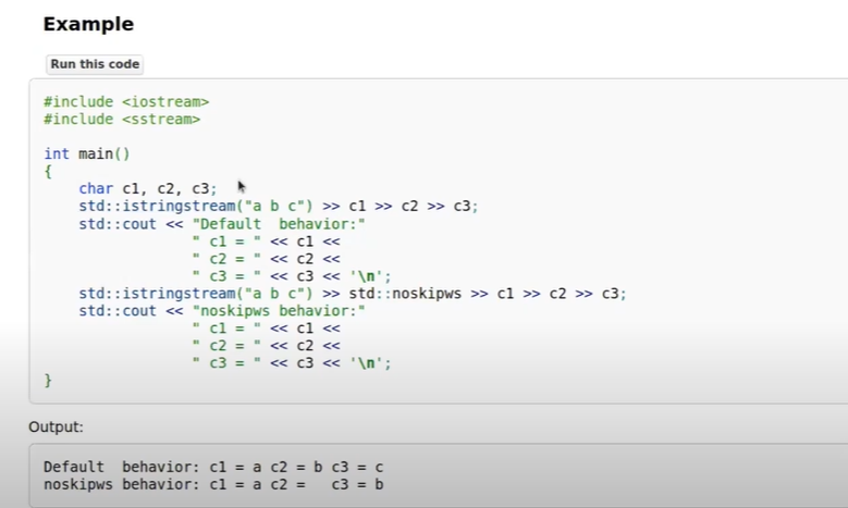 std::noskipws пофакту функция. то есть когда вводим кастуется к адресу на функцию. и cin видя это вызывает эту функцию от себя.