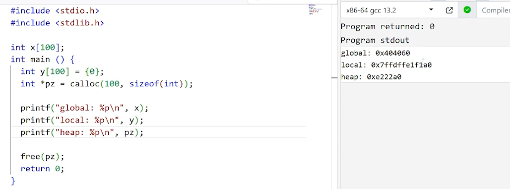 по внешнему виду адреса можно узнать откуда он почему глобальные переменные/массивы зануляются при объявлении, а на куче нет? потому что это бесплатно, они просто вшиты в бинарник и при запуске программы загружаются в память