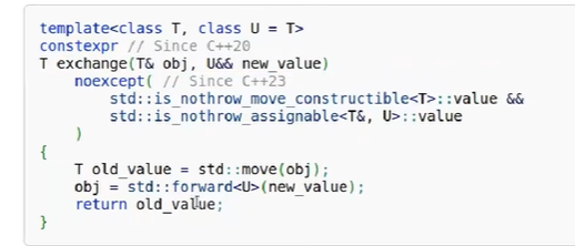 T exchange(T& obj, U&& new_value)