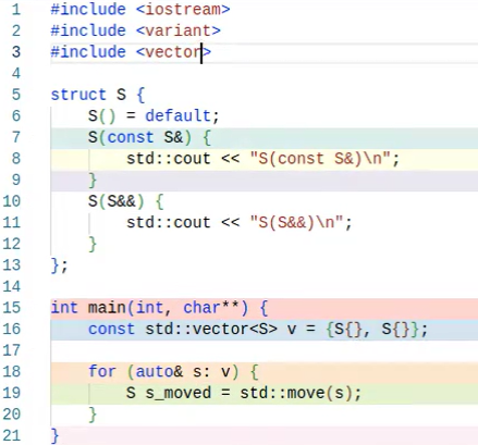 мув конструктор должен быть noexcept если в своем классе не объявить move ctor noexcept, то при реалокации в векторе, он будет копировать все объекты, хотя мог бы мувать