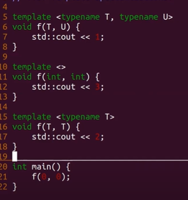 но точное соответствие лучше, чем каст - то есть если определена функция для типа, к которому можно скастить, то сгенерируется шаблонная функция, для того типа