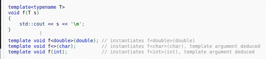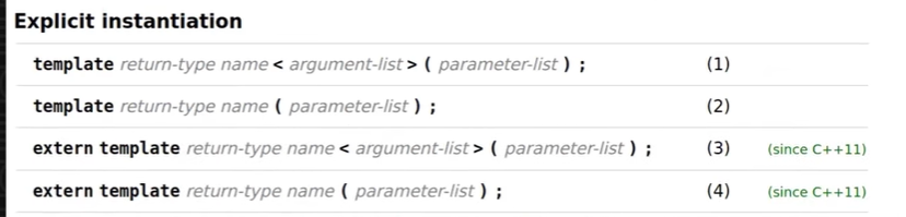 это будет значить, что здесь мы собираемся использовать шаблонную функцию от конкретных типов, но при этом хотим, чтоб компилятор не истанцировал эту версию, а поверил, что такая версия где-то уже истанцирована и чтоб линковщик нашёл и подвязал