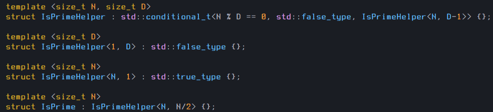 std::true_type - метафункция, в которой написано static const bool value = true std::false_type - метафункция, в которой написано static const bool value = false чтоби каждый раз не писать такое для метафункций, можно просто наследоваться от true_type или false_type и автоматически будет такое поле std::integral_constant<type, value> - метафункция, в которой написано static const type::value = value std::rank - рекурсивная шаблонная подстановка, которая возвращает размерность массива, а для немассивов - 0