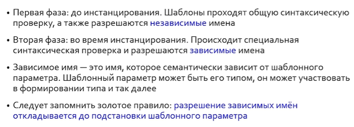 когда компилятор компилирует шаблонный код, он это делает в 2 прохода