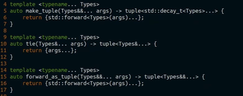 - по аналогии с функцией std::make_pair есть функция std::make_tuple. берёт аргументы и делает tuple из них с отбрасыванием ссылок. с появлением CTAD стала менее нужной