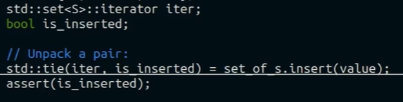 std::tie(iter, std::ignore) = set_.insert(value)