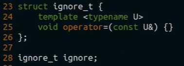 std::ignore - глобальная структура ignore_t в пространстве std, которой можно что угодно присвоить и ничего не произойдёт