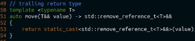 trailing return type - такой синтаксис, чтобы указать возвращаемый тип после сигнатуры функции, а не до неё