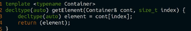getElement(v, 0) = 1;если бы нам хотелось возвращать либо ссылку, либо не ссылку в зависимости от того, какой тип у return, то понадобится decltype в возвращаемом типе можно написать или