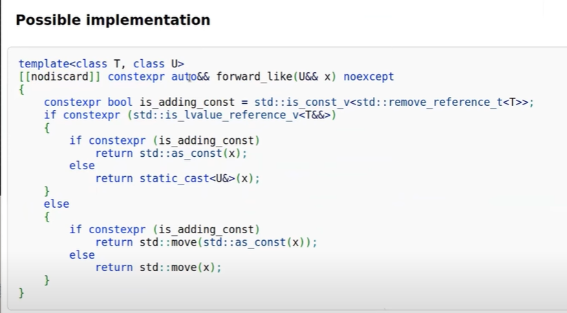 это значит, что мы хотим получить результат такого типа ссылки, по которому мы вызвались таким образом можем сразу определить функцию и для lvalue& и для const lvalue& и для rvalue& и для const rvalue&