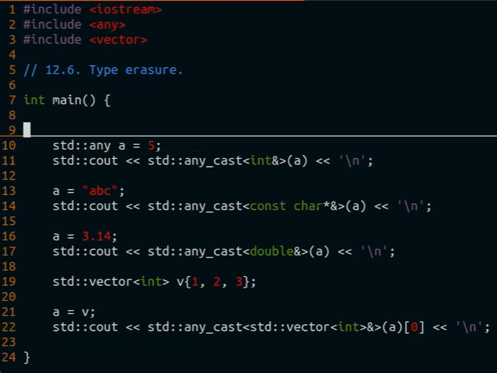 если неправильно написать тип в std::any_cast, то будет runtime error std::bad_any_cast