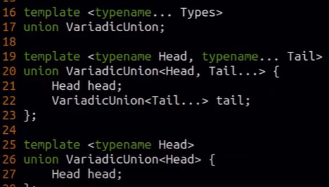 юнион с переменным количеством типов (variadic union) - это как tuple, только вместо tuple union